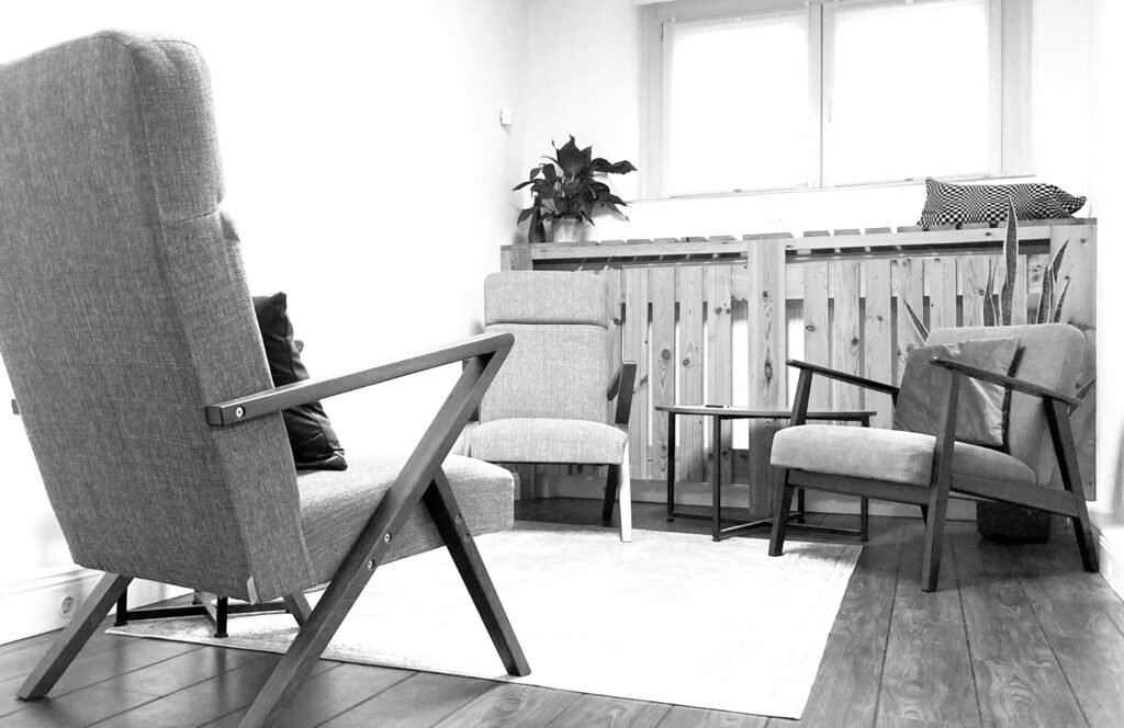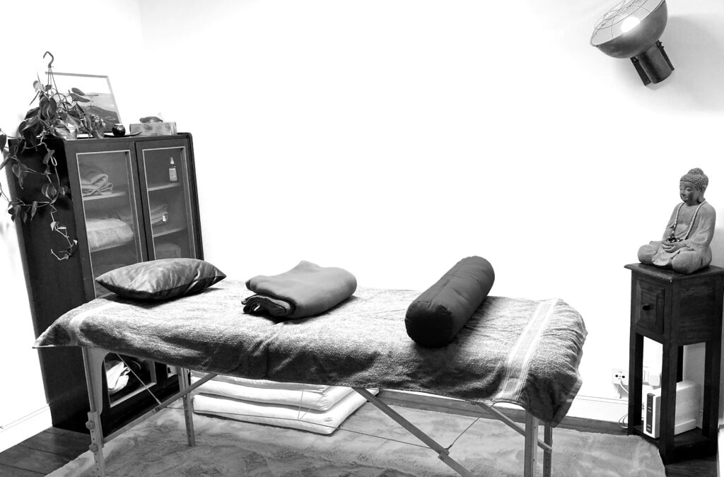 Da es vorkommen kann, dass man während eines Gesprächs merkt, dass das eigentlich Thema im Moment eher körperlich ist (oder umgekehrt), sind die Räume in denen ich arbeite so gestaltet, dass es möglich ist, während der Sitzung zwischen Beratung und Körperarbeit zu wechseln.